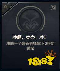 冲啊,壳壳,冲!成就的获得方法是用同一个峡谷先锋拿下2座防御塔。这个成就建议玩家在敌方塔下有己方兵线,并且只剩半血以下时释放先锋,因为先锋的撞击会对塔造成总血量一半的伤害。随后玩家带着先锋和兵线推进,并尽可能的驱赶前来拦截的敌方英雄。